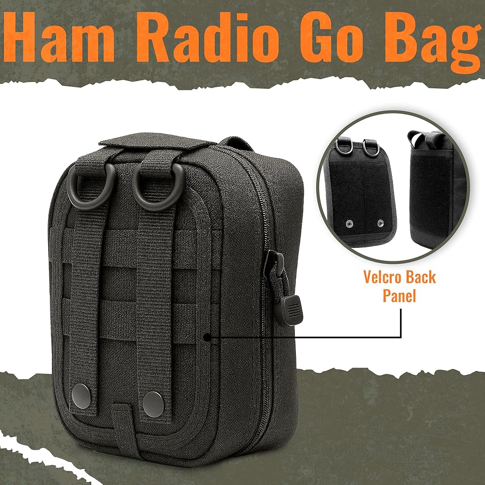 Ham Radio Go Bag with Tear-Away Hook and Loop Back - Molle Compatible, Multi-Pocket Design for Radios, Cables, and Gear - Great for Radio Bugout Bag and Survival Kit
