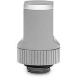 EK-Quantum Torque Rotary (Adapter Fitting) is a revolvable T adapter fitting with G1/4" threads. In the form of a cut-off cylinder, it is very sturdy and there are zero movements in the revolvable joint. With one male and two female threads, it can be used for setting up drain ports, 90-degree angles or parallel connection between components. This Quantum Line adapter is made out of CNC machined brass with high-quality satin titanium finish while the seal is made by quality rubber O-rings. The adapter allows for connection of fitting with G1/4" threads to extend tubing possibilities in your water cooled system allowing for easier bends and better accessibility. Technical specifications: - Material: Brass - Threads: * G1/4" BSP; 4,5mm male thread length * G1/4" BSP; 6mm female thread length - The outer diameter: 23mm - Installed height: 31,5mm - Sealed with high-quality NBR o-ring Model: TR-3831109849835-2P