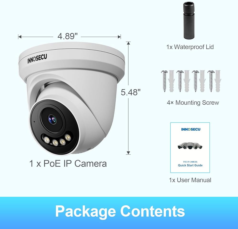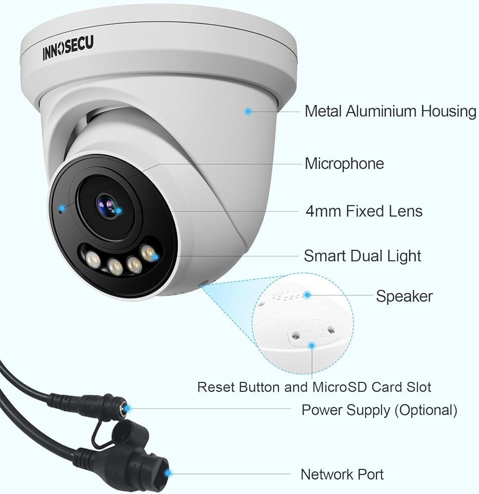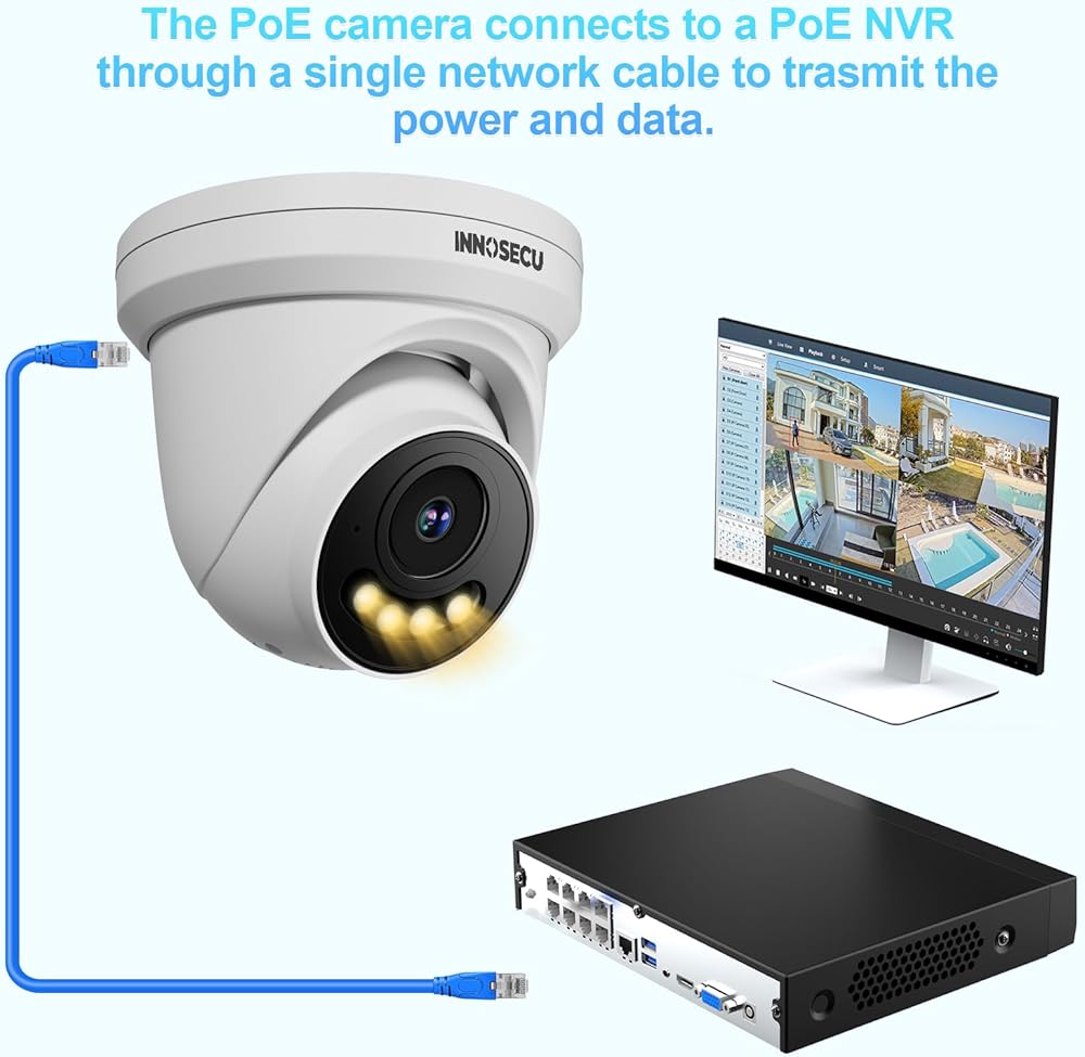 WORK WITH NVR: This camera is fully compatible with INNOSECU PoE NVR and is highly recommended to be used with it to create a surveillance system. This ensures plug-and-play functionality and maximizes the camera's AI features. It is also partially compatible with third-party PoE NVRs