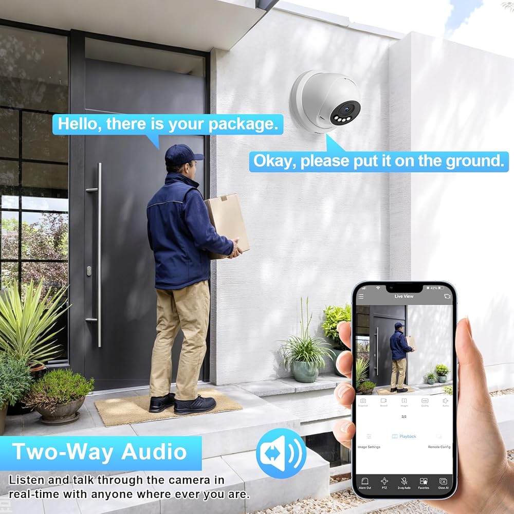 UltraHD 12MP AI PoE Camera @30fps, IP Security Camera Outdoor Waterproof IP67, Smart Dual Light Color Night Vision, 4mm Lens, Two Way Audio, Face Detection, Human/Vehicle Detection,IND12HD99A