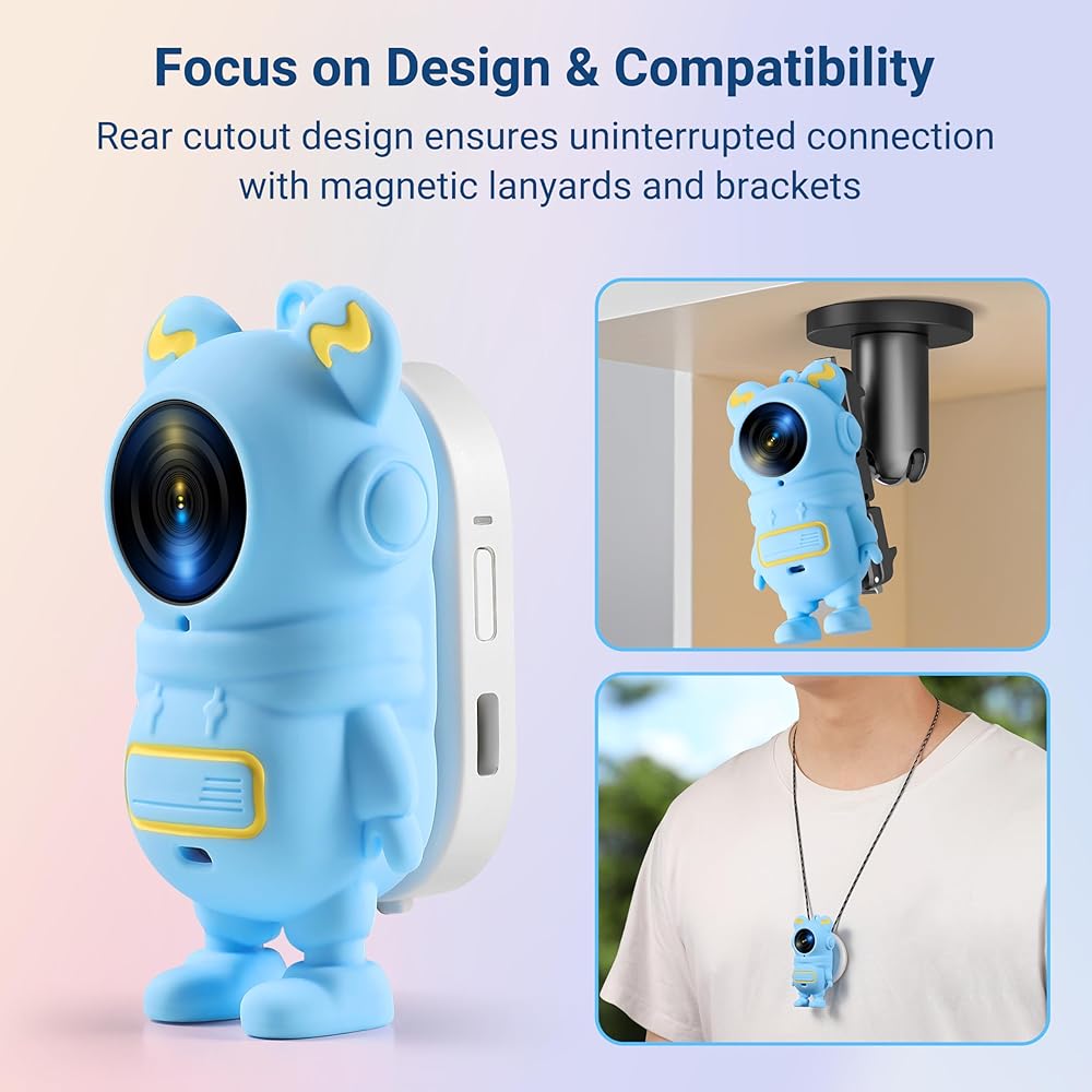 Inimitable Design: Made for Insta360 GO 3S/GO 3, this astronaut-inspired silicone case combines protection and style. Its friendly back design ensures magnetic functionality, while the rope hole at the top allows for attaching a lanyard for easy portability. The bottom astronaut boot base lets your camera stand securely as tech decor.