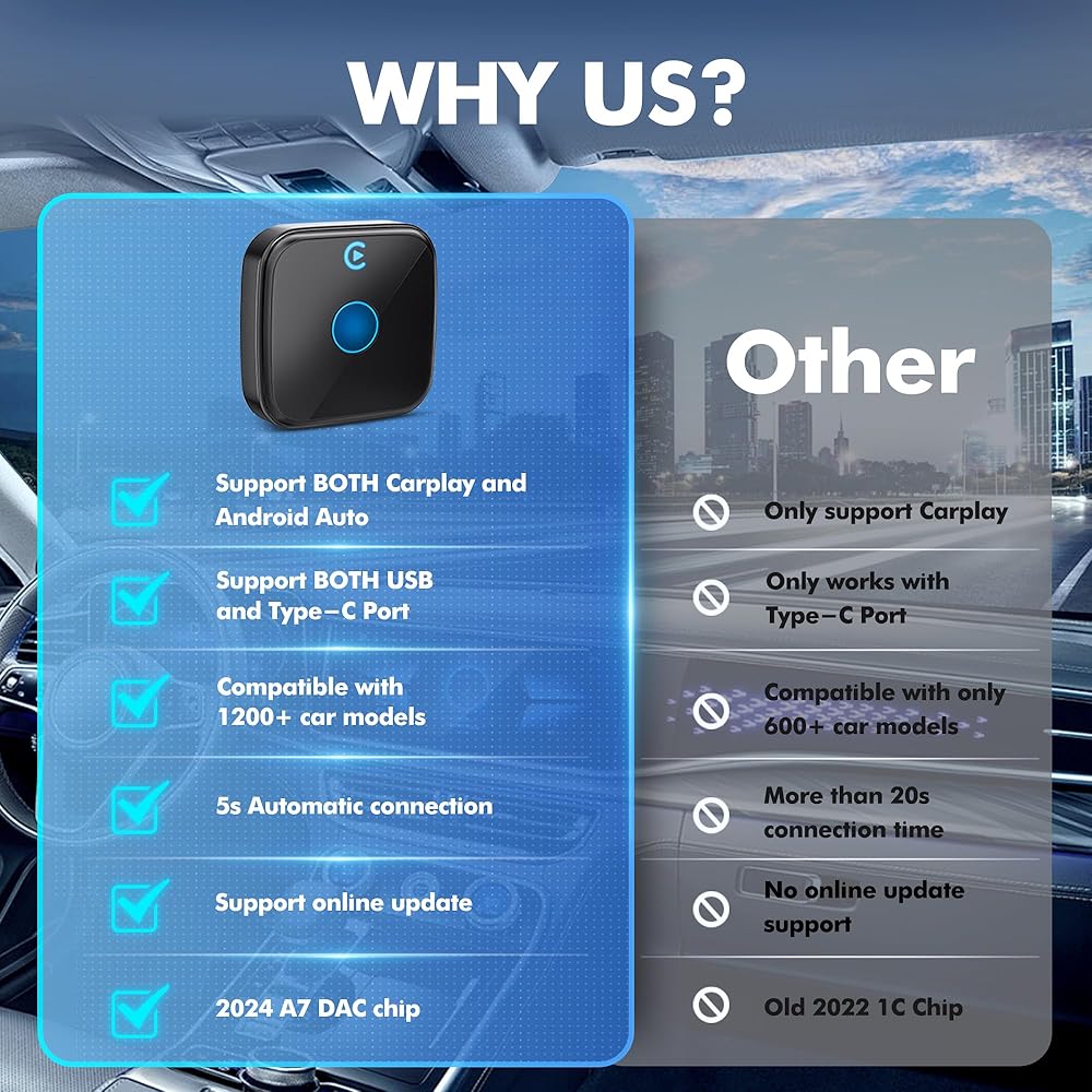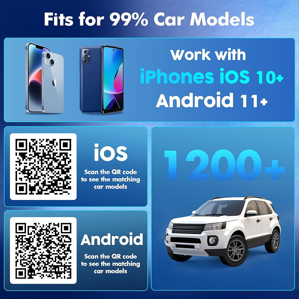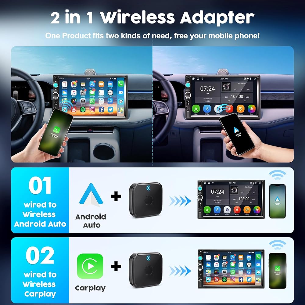 Wireless Carplay Adapter, Wireless Carplay Adapter for Apple Carplay & Android Auto(2 in 1), Stable Connection Converts Wired to Wireless.Carplay Adapter for iPhone iOS 10+ / Android 11+