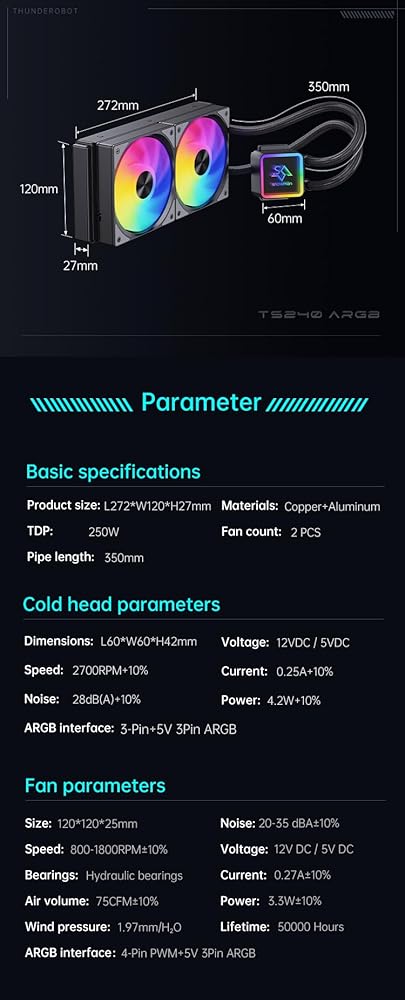 Available in two sizes: 240mm Black Color with dual fans for enhanced cooling.