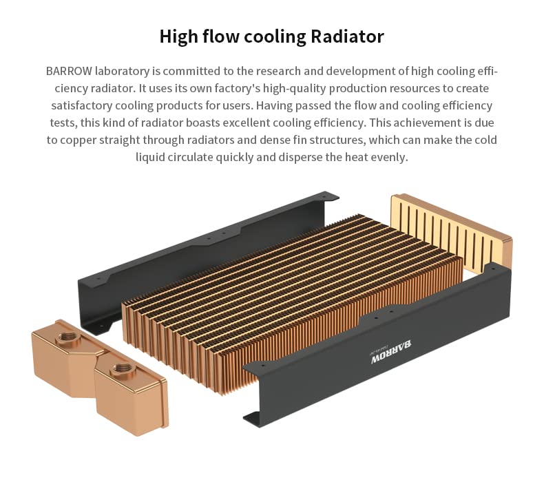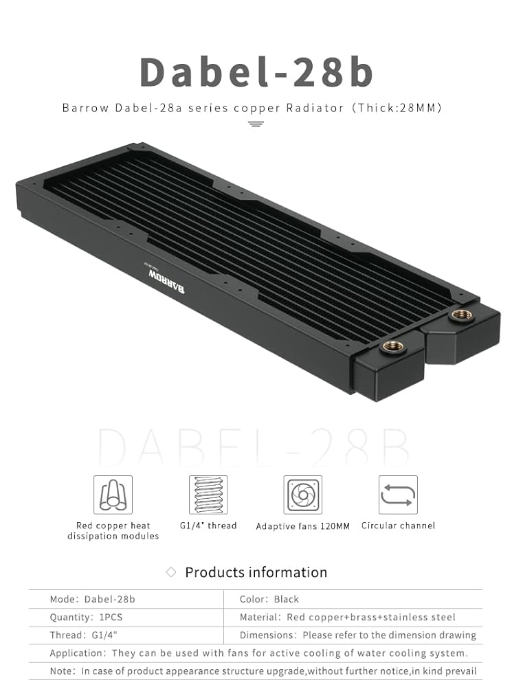 BARROW Dabel-28B series radiators are high-density copper radiators and measure 28mm thick, suitable for most standard and compact chassis to install and use.