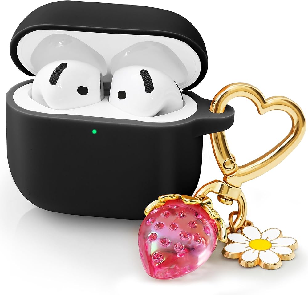 【Compatibility】Perfect Fit Apple Airpods 4th Generation wireless earphone Airpods 4 with Active Noise Cancellation (2024)(USB-C/Lightning Cable), Not compatible with other models. The Package Include: AirPods 4 Case *1, Cute strawberries keychain *1