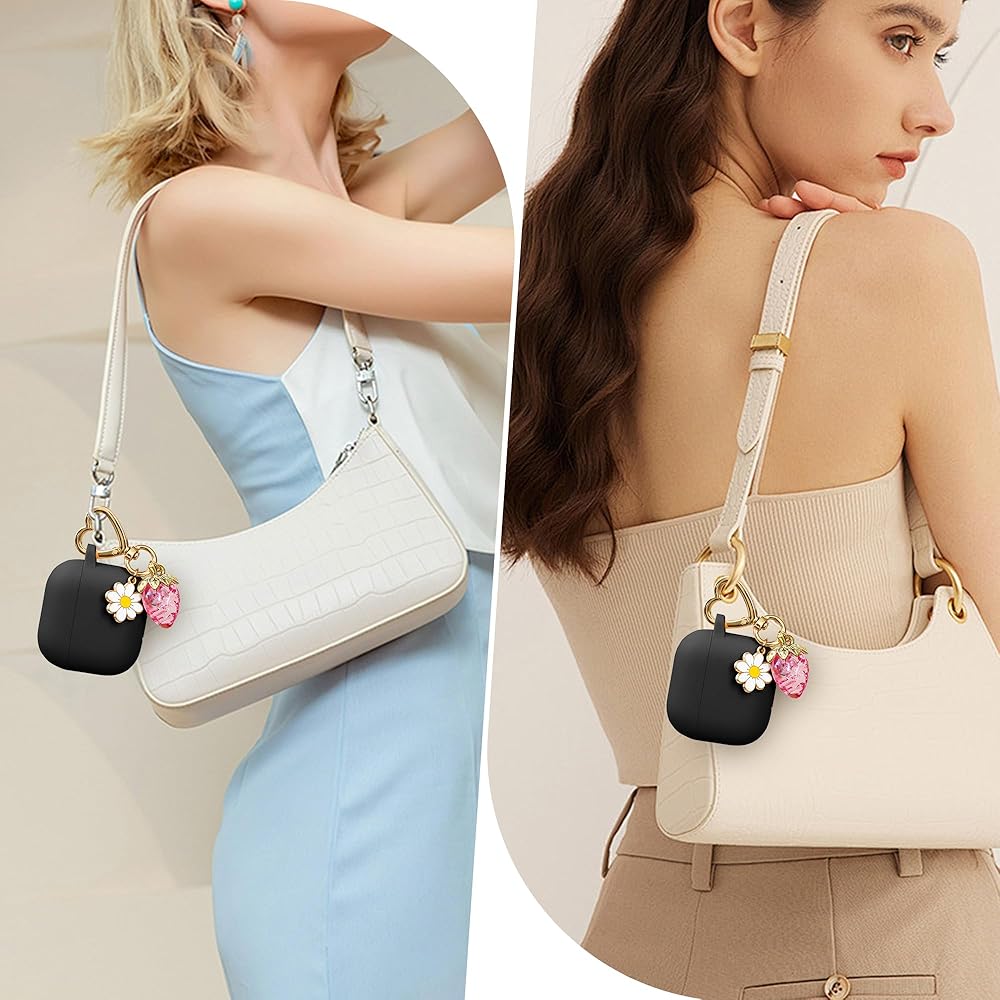 for Airpods 4 Case 2024 with Cute Keychain for Women Girly, Soft Silicone Protective Apple AirPods 4th Generation Cases Cover for Airpod iPod 4th Gen, Anti-Scratch, Front LED Visible, Black
