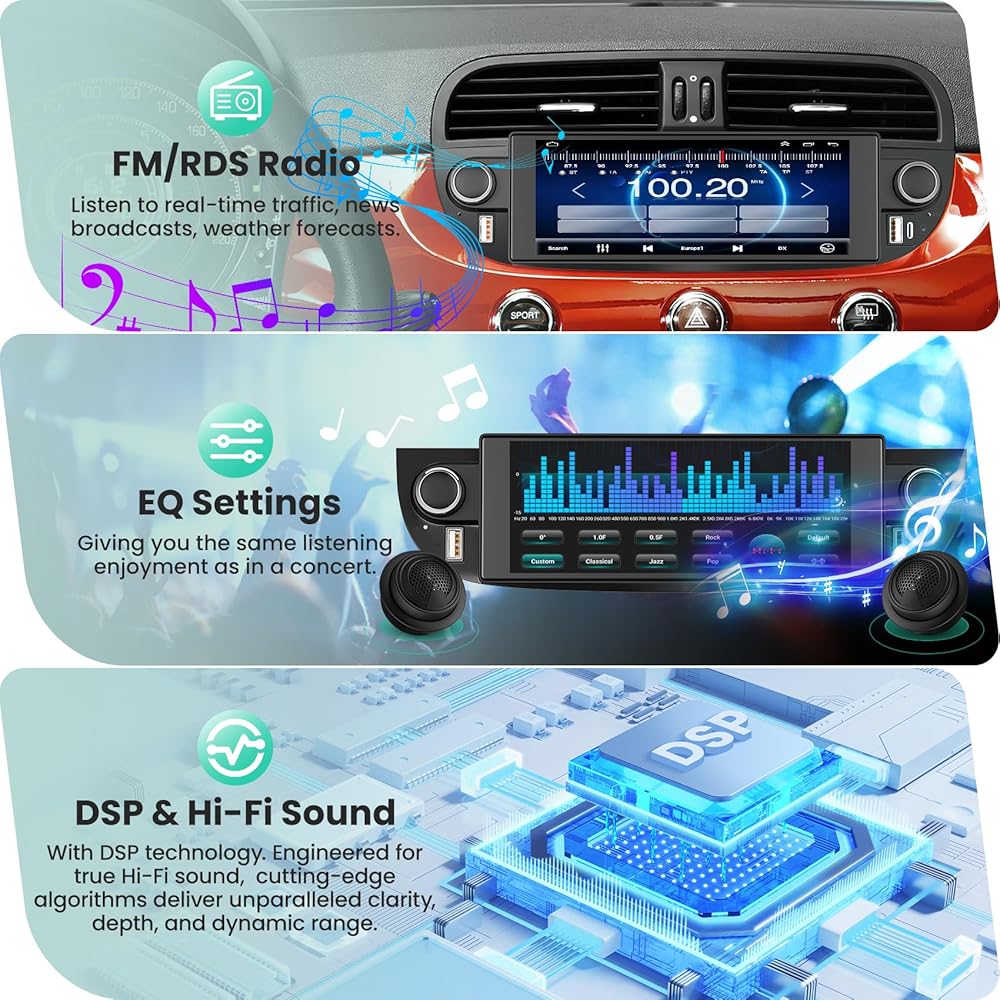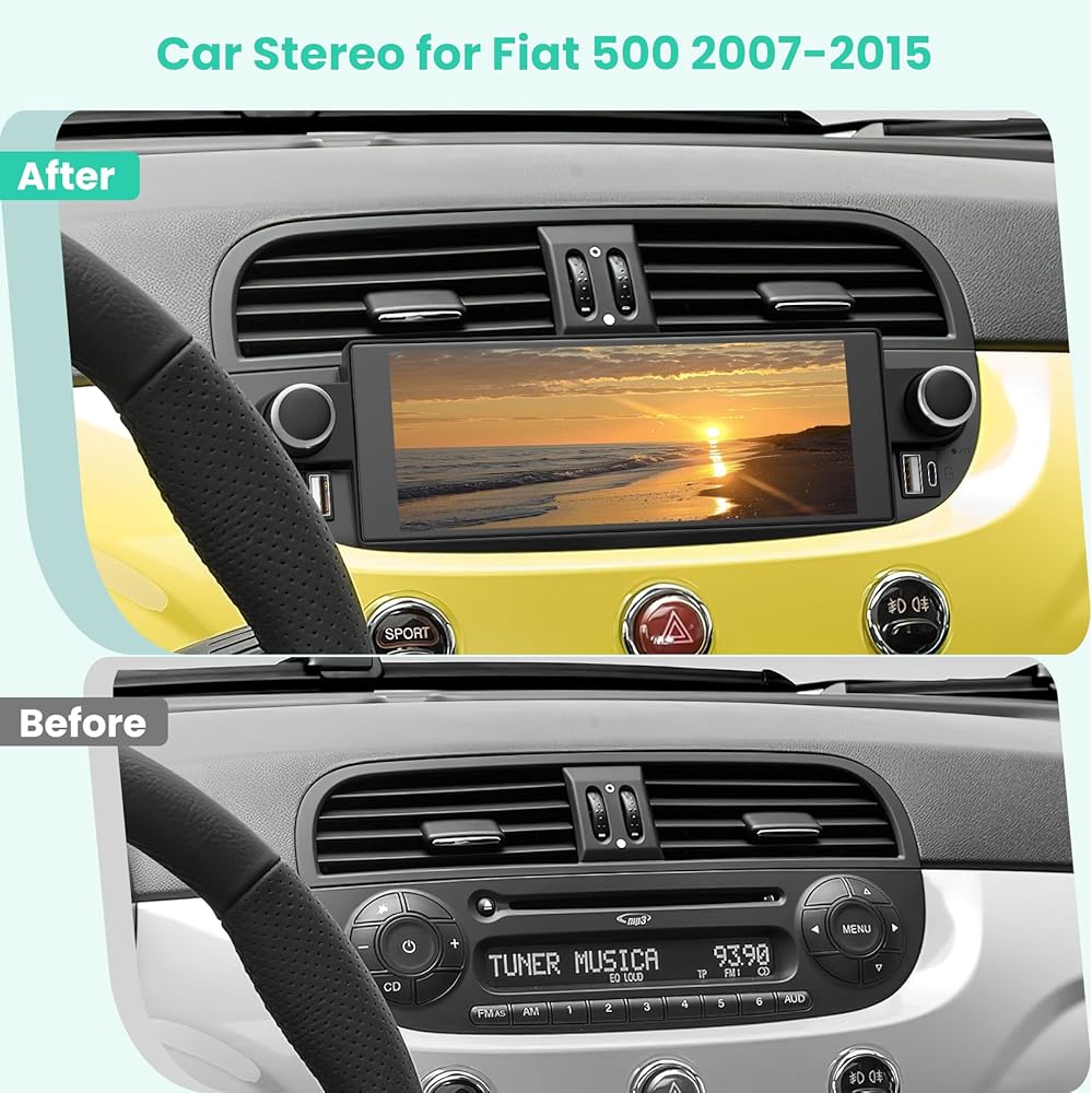 【Applicable Car Model】This Car Digital Media-Receiver is designed for Fiat 500 2007 2008 2009 2010 2011 2012 2013 2014 2015, easy to install and operate. Please check the year, dimensions and shape of the center console of your Fiat 500 car radio before purchasing