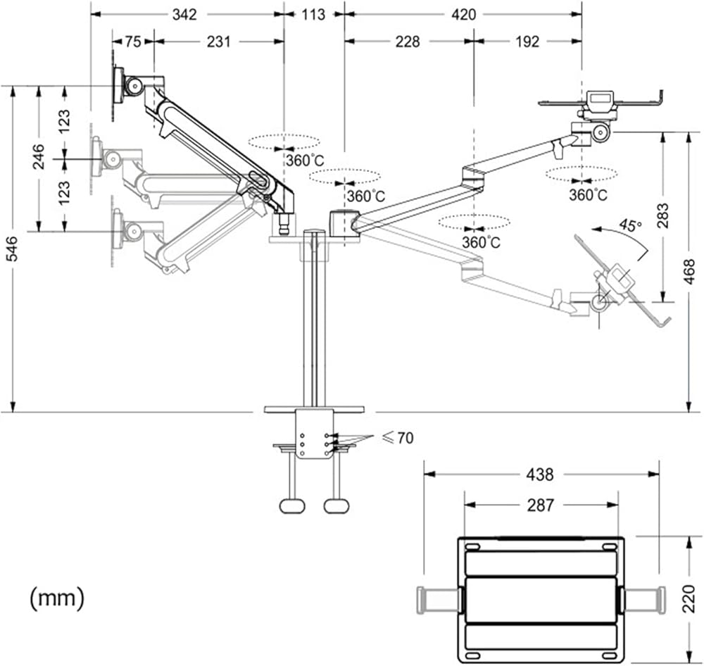 * Full motions flexibility with all directional effortless adjustment without tools used