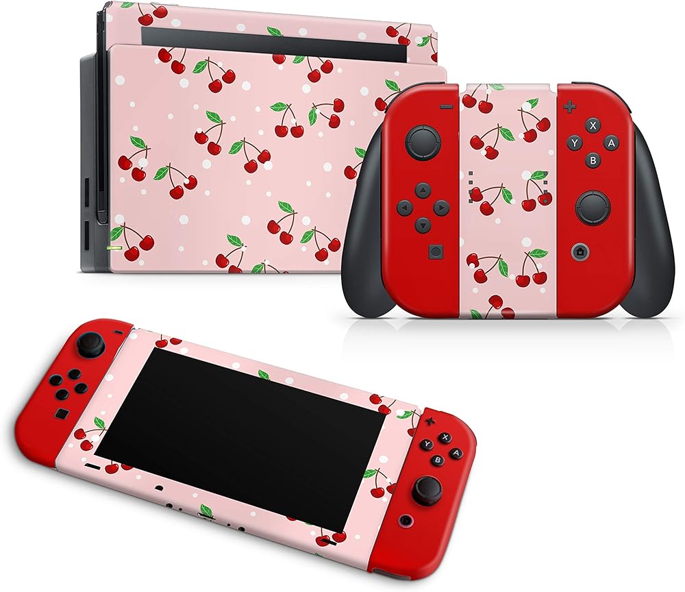 ZOOMHITSKINS Compatible with Switch Skin Cover Cherry Red Pink Cute Polka Dots Pastel Princess Kawaii Anime 3M Vinyl Decal Sticker Wrap, Made in The USA
