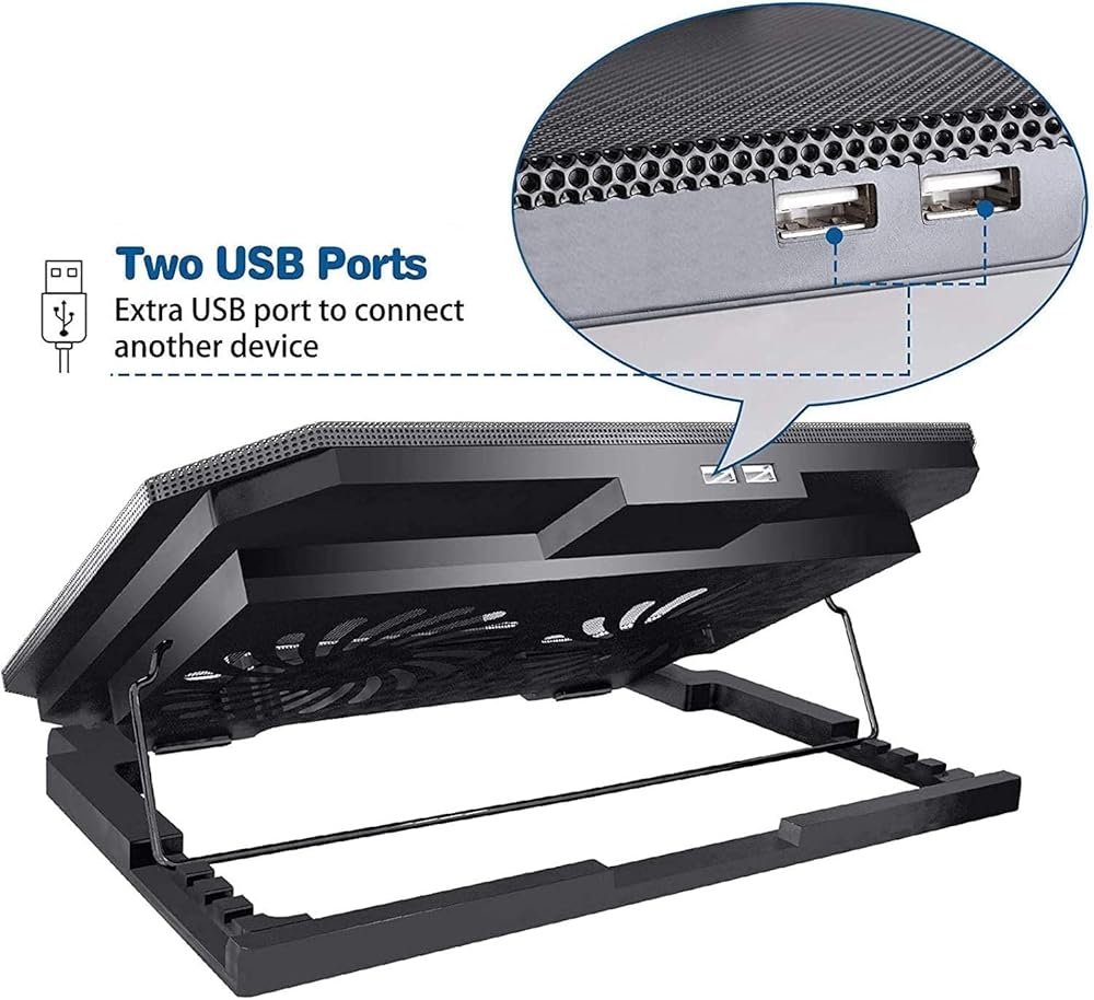 4 Featuring dual USB ports, this cooling pad offers convenient connectivity options - use one port for powering the cooling pad while keeping the other free for your accessories.