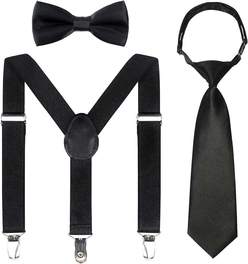 AMAZING SUSPENDERS SETS - 3 piece/pack! Including Suspender, Bow tie and Necktie! It is an excellent gift idea for every baby, toddler and child! Kajeer took 6 months to solve the color difference of the front suspender, bow tie and tie and size issues. You can rest assured to buy for your child