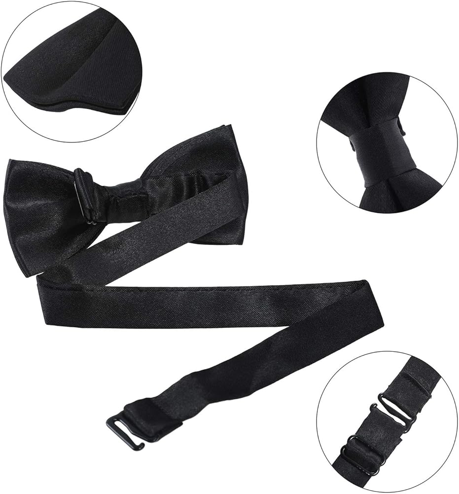 BOW TIE & NECKTIE SIZE - 2 x 4 Inch bow tie and 2.5 x 12 Inch necktie neck are made of poly satin material. Suitable for 10-17 inch neck. 2.5 x 5 Inch bow tie and 2.7 x 15.7 Inch necktie Suitable for 11-18 inch neck