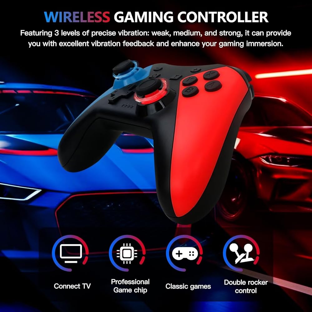 • Features:The controller for Nintendo Switch has dual vibration motors with 3-level precise vibration: weak, medium and strong that provide you excellent vibration feedback to enhance the game immersion