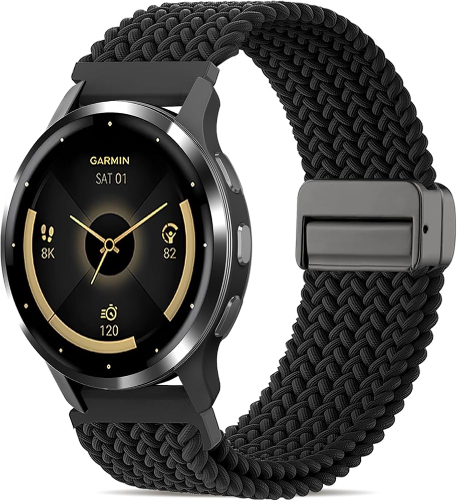 【22mm Magnetic Braided Watch Band】Compatible with Garmin Venu 3 45mm/Venu 2 45mm/Vivoactive 4 45mm, Forerunner 265 46mm/Forerunner 255 46mm/255 Music, compatible with Amazfit Bip 6/Bip 5/GTR 4/GTR 3/GTR 3 Pro/GTR 2/2e/GTR 47mm, Galaxy Watch 3 45mm/Galaxy Watch 46mm, Gear S3 Frontier/Classic. Also fit for any watches with 22mm lugs. NOTE: Please check your watch model before buy it.