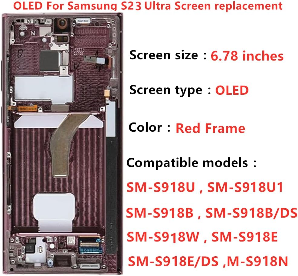 【 OLED High quality display screen】: Very suitable For Samsung Galaxy S22 Ultra 5G SM-S908U SM-S908U1 SM-S908W SM-S908B SM-S908B/DS SM-S908E SM-S908E/DS, please confirm your phone model before purchasing 100% brand new LCD screen. All of our products undergo rigorous testing before shipment. We guarantee to provide high-quality Display touch screen replacement components for your device, providing a clear visual experience. 【 Purpose 】: If your Galaxy s22 ultra has image display issues such as cracked screen, bad pixels on the screen, unresponsive touch screen, physical cracks or scratches on the glass, or false color problems, it can perfectly replace your non working screen and make your phone look brand new. 【 Installation 】: Our screen comes with a built-in frame for easy installation, but I still recommend that you go to a professional phone repair shop to install the screen to avoid screen damage caused by improper operation. [Packaging]: S22 Ultra display and repair tools. 【 Attention 】:The display size of this S22 ultra OLED screen is 6.78 inches, and the curvature of the screen edges is not obvious. However, the quality of this s22 ultra OLED screen is close to the original screen, with fingerprint and S-PEN functions. The quality of the OLED screen is better than that of the INCELL screen. All screens are of high quality and we will test them before shipping. 【 After sales Service 】: 1. Please check if the screen is damaged or broken after receiving the package. 2. Please test the screen before installing it. If there are any problems with the screen, please contact me in a timely manner. Due to the time difference, I will reply within 24 hours and handle the problem for you.
