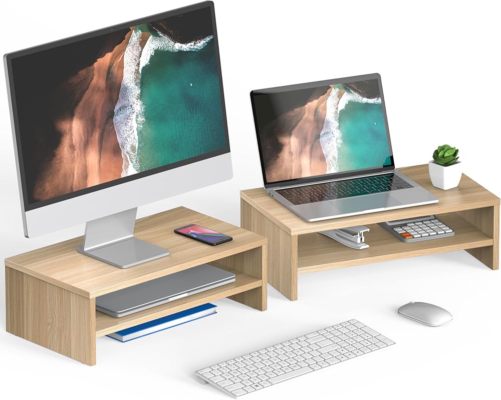 【2 Tiers for Desk Organization】Extra storage space while improving the height of your computer display. They are spacious enough to hold some of your larger sized things such as books, tablets. The storage of small stuffs is not even a problem.