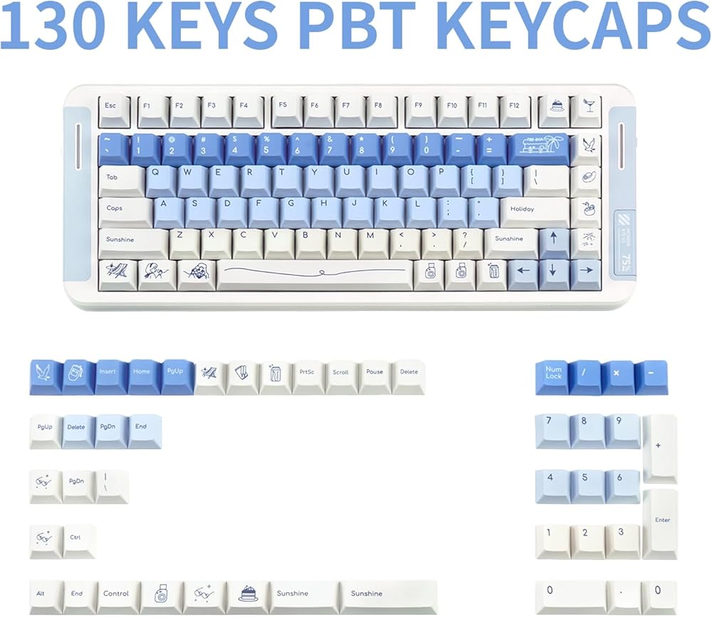 Widely Compatible: This mechanical keyboard keycap set consists of 130 keys and fits most 60%/65%/75%/80%/96%/100% MX keyswitch keyboards.
