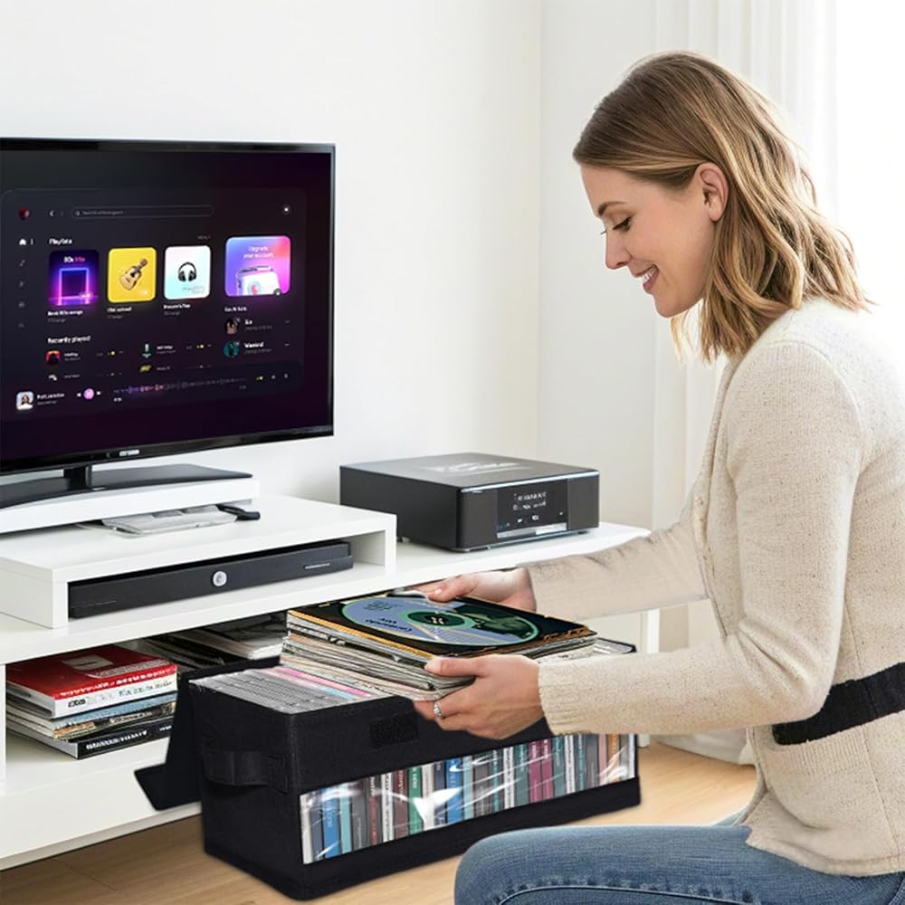 Versatile Storage: The black cd/dvd storage boxes are great storage for cds,dvds,discs,but this cd cases can also be used for a number of other items such as clothes, books or magazines. Fits under beds, on shelves, or inside entertainment centers – a minimalist home organizer for living rooms, studios, or RVs.
