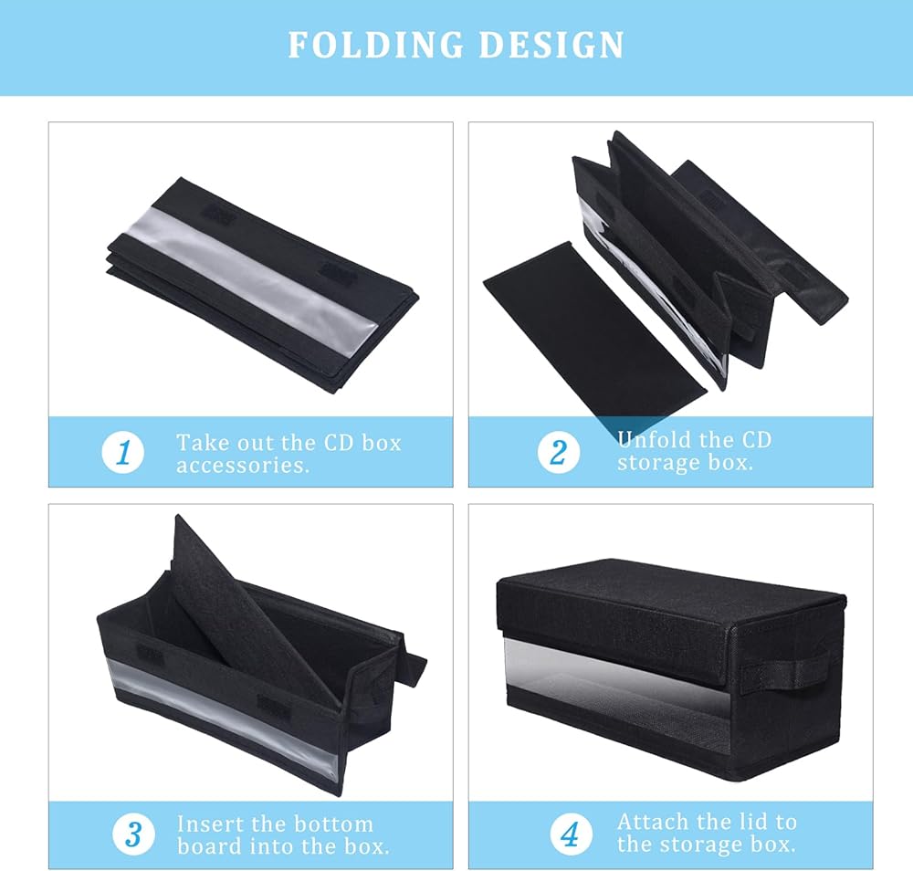 Premium Durable Fabric: Crafted with heavy-duty non-woven fabric. Ideal for long-term media storage in basements, garages, or car CD holders, resisting cracks and wear. This cd dvd case are available in a sleek black colour which looks great and will fit in any room.
