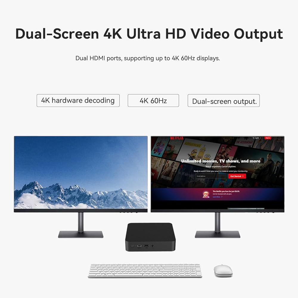 ✅【32G DDR5 & 1TB PCIe4.0 SSD】 This micro computer comes with 32G DDR5 5200MHz (dual-channel, 2*16G, Max 48G*2) and installed with 1TB PCIe4.0 SSD. The dual M.2 2280 PCle 4.0 slots of up to 4TB*2. Higher data transfer rate, faster reading speed, to meet higher storage needs, this mini computer is suitable for users with higher performance requirements