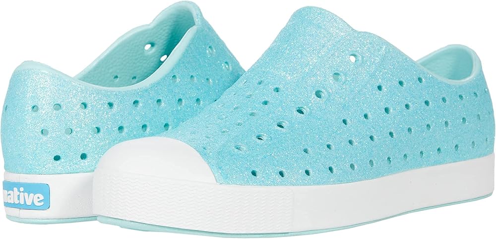 VEGAN MATERIAL: Certified Vegan edition of the Jefferson Bling Glitter features a perforated EVA upper, a shock-absorbent sole and a rubber toe cap made with recycled materials