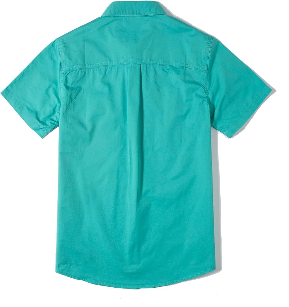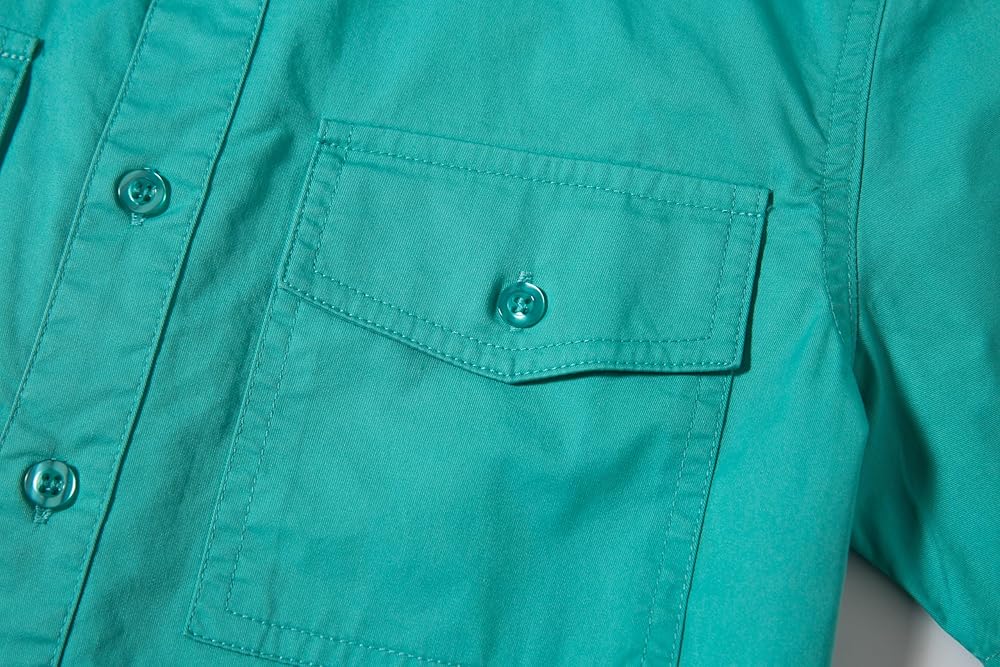 - Short Sleeves,Normal Collar,Button Front Closure,Two Front Chest Pockets with Flaps,Plastic Buttons