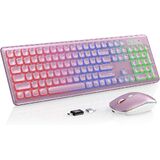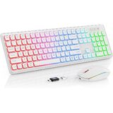 Wireless Keyboard and Mouse Combo, RGB Backlit, Rechargeable & Light Up Letters, Full-Size, Soft Typing, Sleep Mode, 2.4GHz Quiet Keyboard Set for Mac, Windows, Laptop, PC, Trueque KM42Pro (Black)