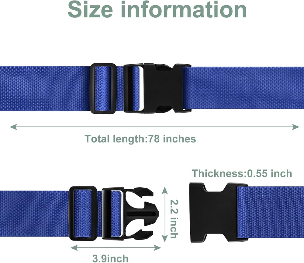 ADJUSTABLE LENGTH - The Luggage straps can be adjustable. Belt length: 78"/200cm; Belt width: 2" / 5cm; Universal luggage straps fit for 20"-34" suitcase, also workable to use on duffel, backpack, carton, bag or even for connecting two luggage.