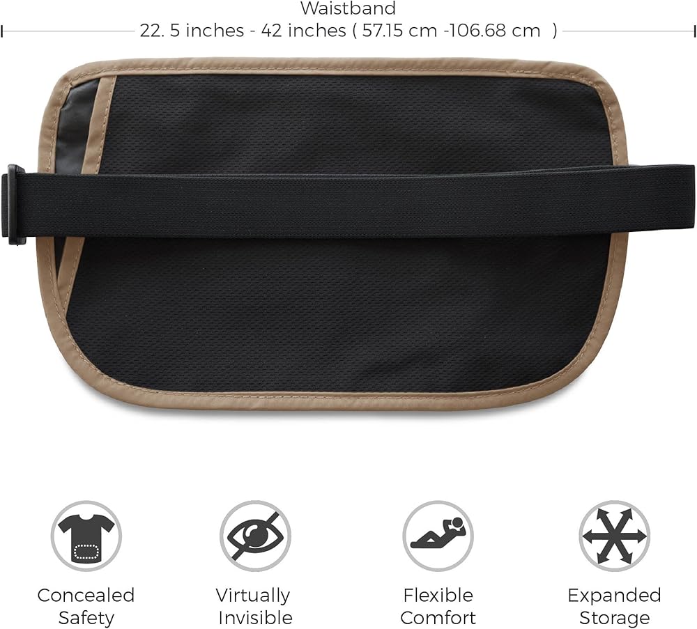 Money Belt for Secure Travel - RFID Blocking Slim Passport Holder - Hidden Waist Pouch for Cash, Credit Cards, Documents - Concealable Under Clothes, Water-Resistant Slim Fanny Pack for Men and Women