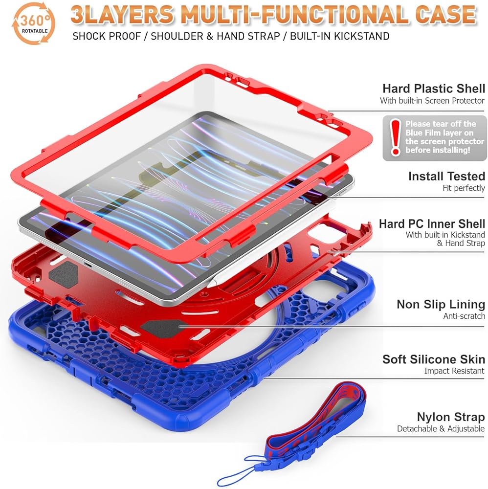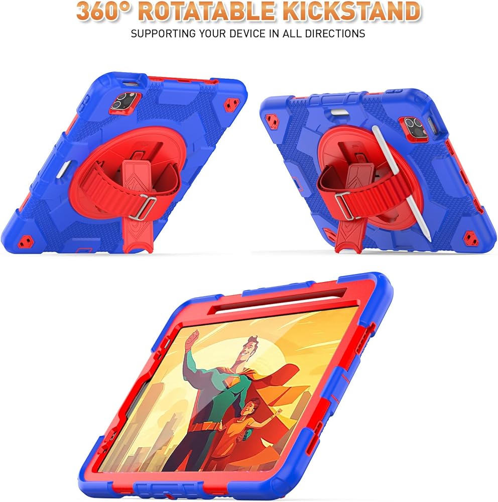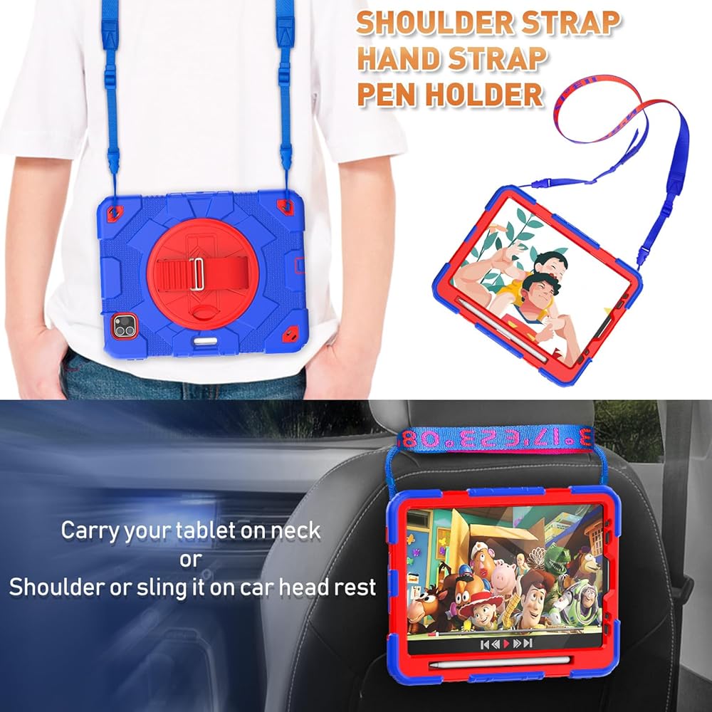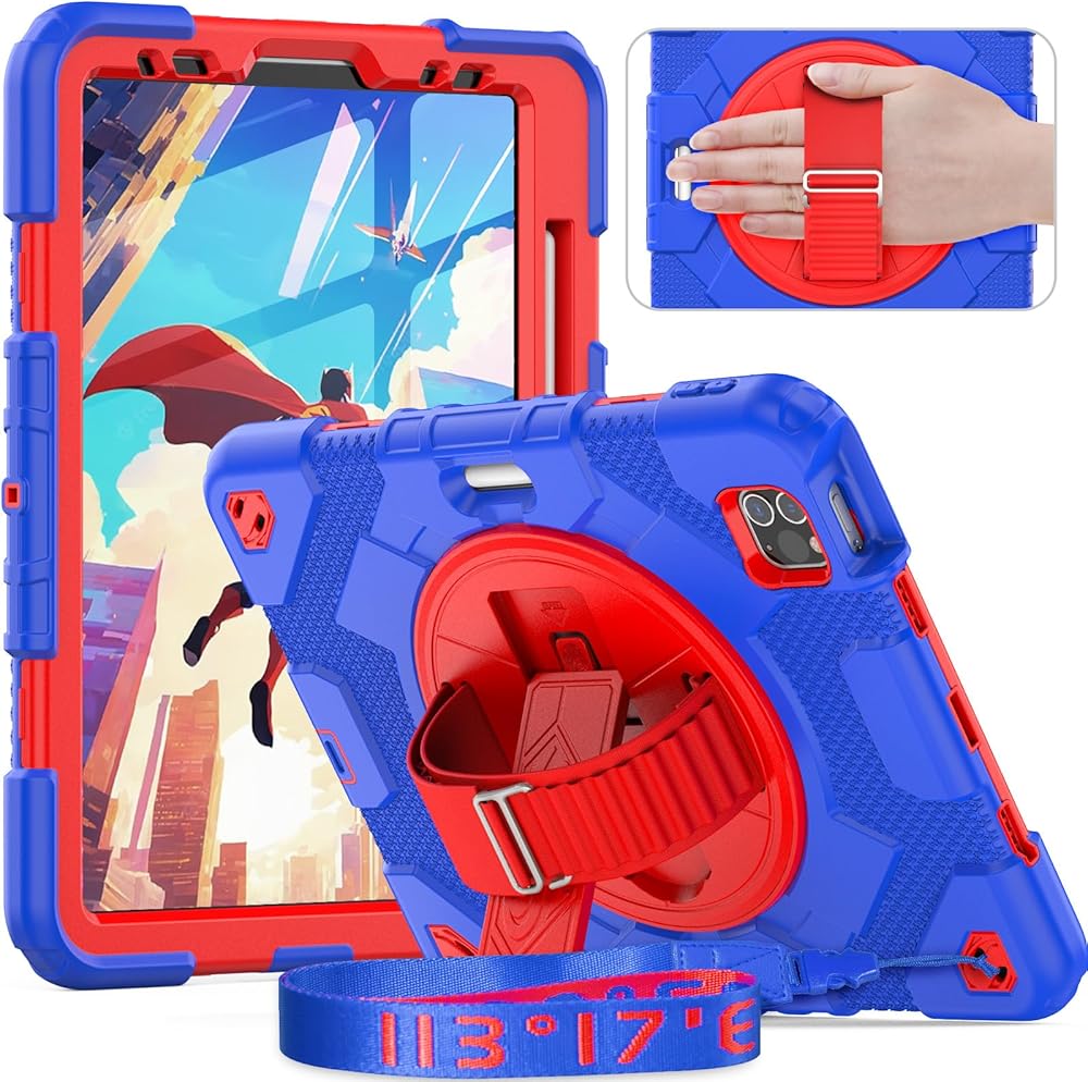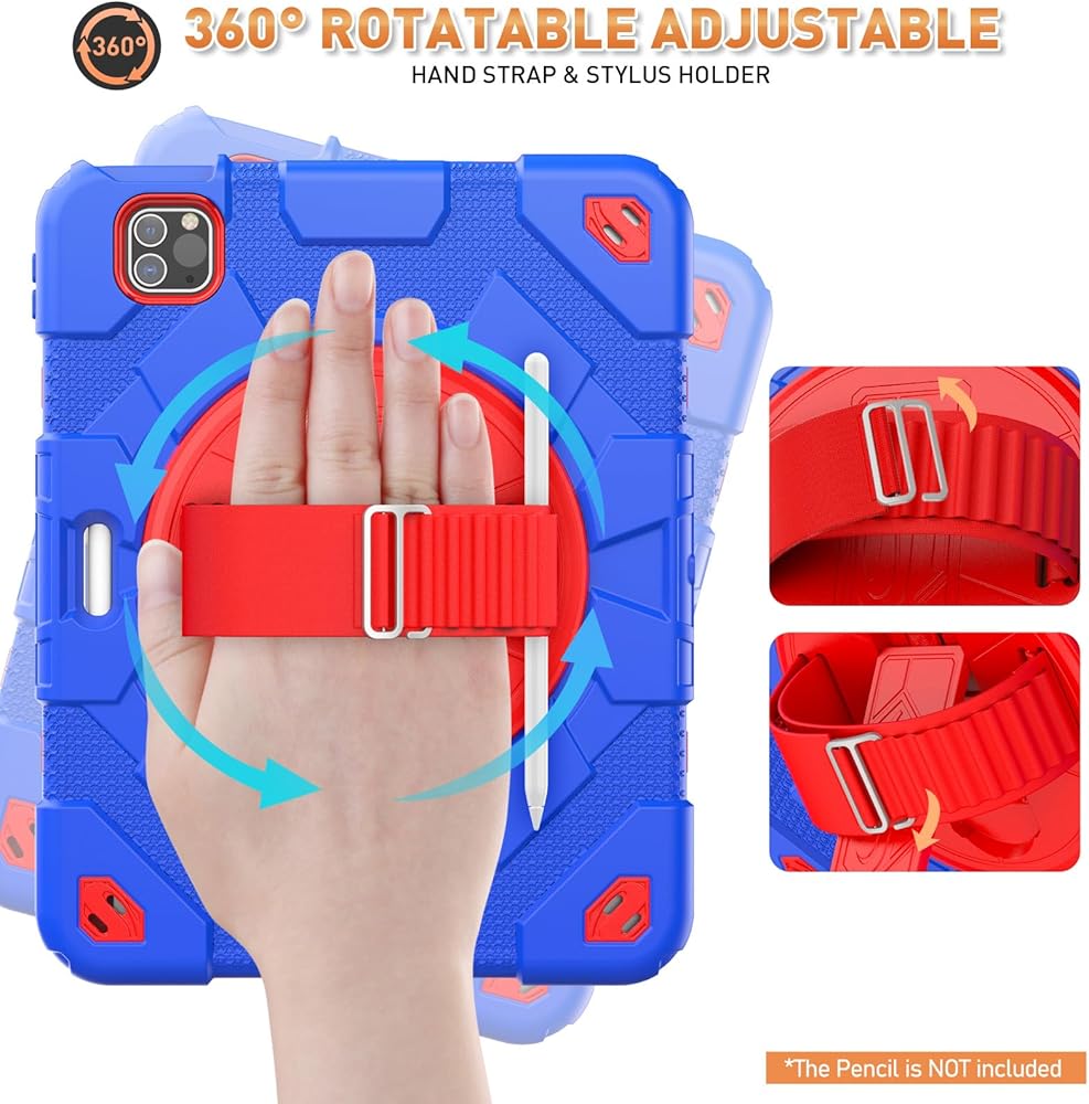 Timecity for iPad Air 5th/ 4th Generation Case 10.9 inch, for iPad Pro 11 inch Case: with Strong Protection, Screen Protector, Hand Strap, Shoulder Strap, 360° Rotating Stand - Dark Blue