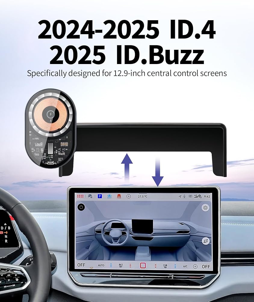 Specially designed for 2024 2025 For Volkswagen ID.4/2025 ID.Buzz Accessories. This phone holder is installed on a 12.9 inch screen only and does not affect screen operation. NOTE: