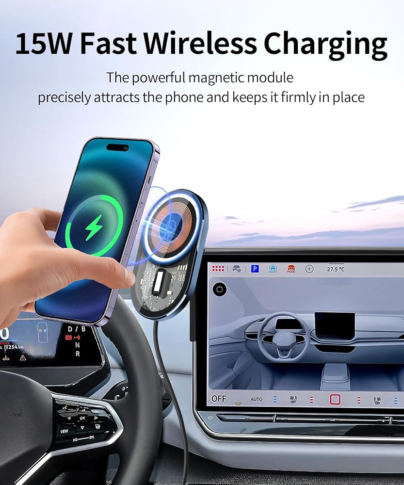 【Car Mount for MagSafe】Compatible with iPhone 16/15/14/13/12 Series Magsafe.(Attached metal ring, paste a metal ring to use other phones.)