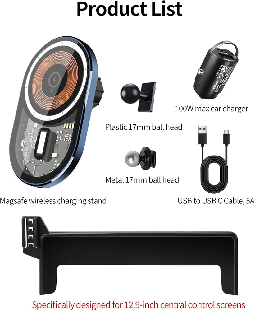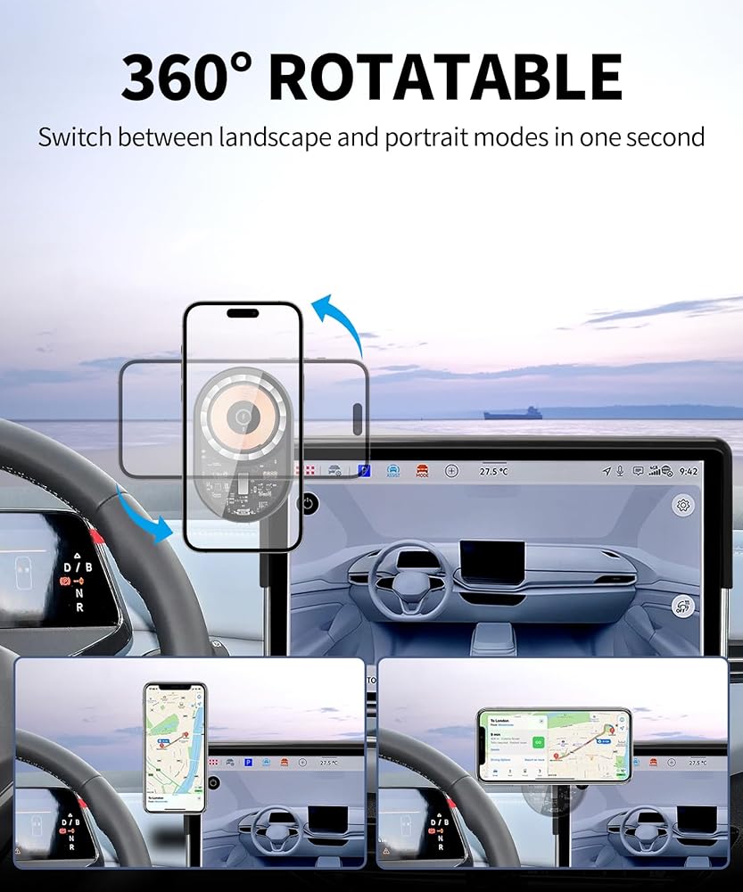 Wireless Charging car Phone Holder for Volkswagen ID.4 2024 2025 / VW ID.Buzz 2025 Accessories 12.9 inch Screen Fixed Clip,360° Rotation car Phone Mount Compatible with MagSafe