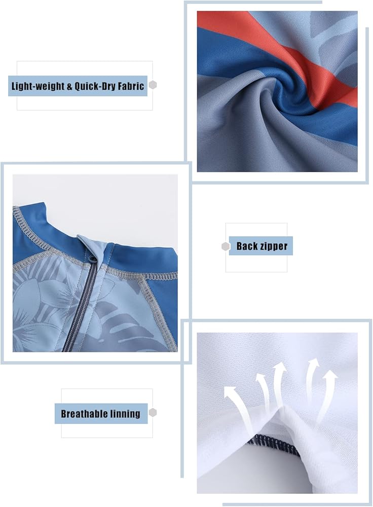 ---One piece designed boys rash guard swimsuit offers full coverage and comfort along with great flexibility and coolness for your active boys.