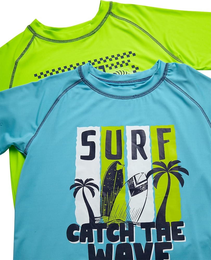 Quad Seven Boys' Rashguard Set - Short Sleeve Swim Shirt and Bathing Suit Set is perfect for water-loving youngsters. Let him splash to his heart's content. This soft protective clothing is especially suitable for little kids with delicate skin who are sensitive to chafing and UV exposure. Buy several sets for all the boys in your family.