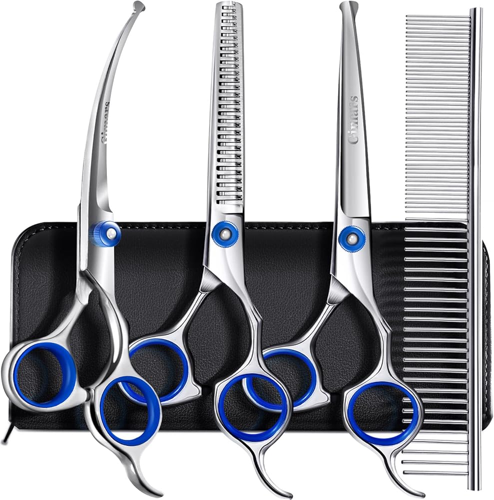 【6 in 1 Dog Grooming Scissors Set】The dog grooming scissors set comes with 2 straight scissors, 1 thinning scissor, 1 curved scissor, 1 grooming comb and 1 storage case