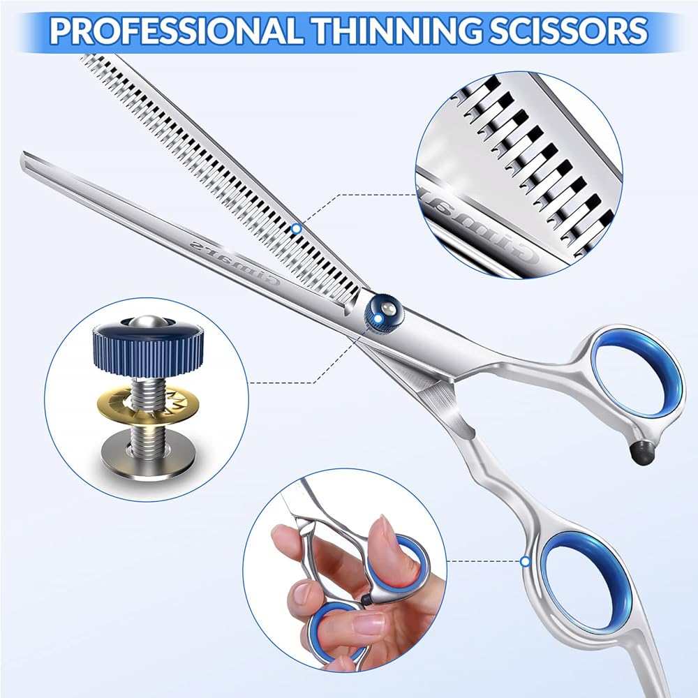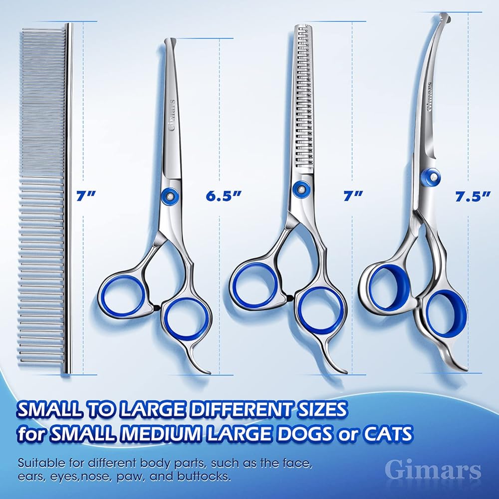 【Professional Dog & Cat Grooming Essential Tool for Groomers】Gimars dog grooming scissors are made of 4CR stainless steel, dipped in a ceramic coating and suffer 60 process carefully polishing and grinding, which makes blades will not rust, cleaned easily and keep the blades sharp for a longer time than stainless steel without this sheath