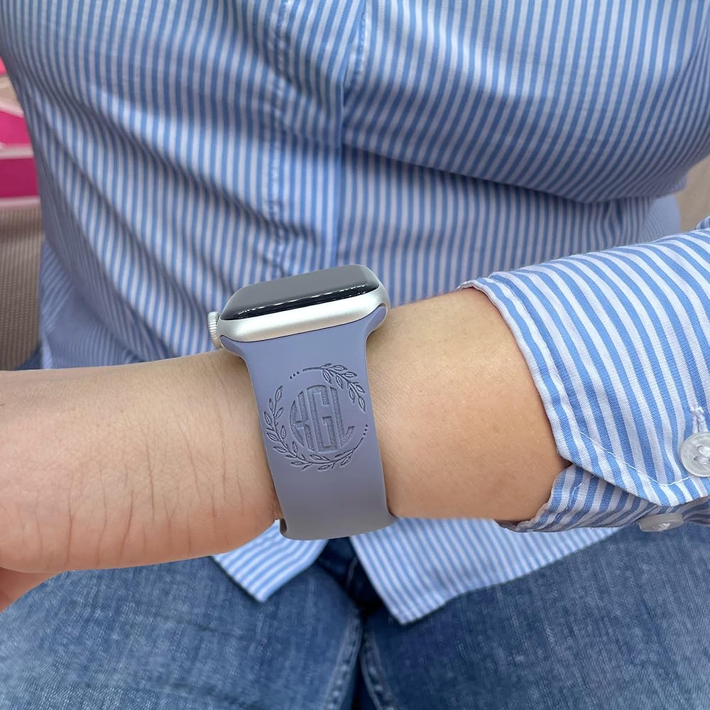 Custom Process: Select band size, band color and charms style, Click "Customize & add to cart", enter the monogram you want to engrave on the strap, choose monogram style.