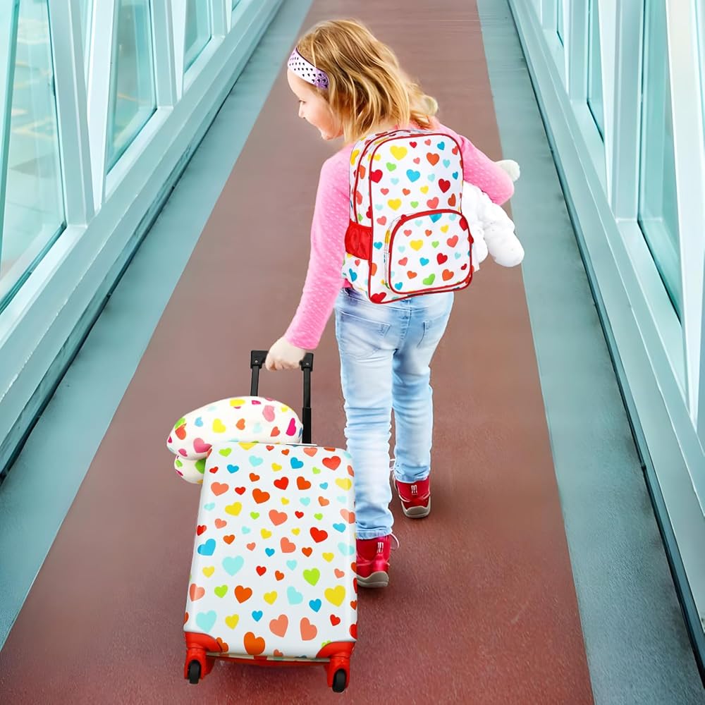 Travel in Style: Who doesn't love a fun travel companion. This adorable luggage set will brighten up your next trip. Adorable heart shape design with space for all of their travel essentials.
