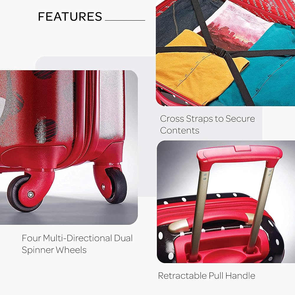 Show your love for your favorite Disney character with this hardside upright travel case from American Tourister. The American Tourister hardside is made from lightweight and durable ABS material and features a sleek hardside design with side-mounted skate wheels, a mono tube pull handle, and a top grab handle for easy lifting. The interior is fully lined and detailed with crisscross tie-down straps to hold clothing in place and a zip around divider that creates two separate packing compartments. This case is perfect for boys and girls on the go. Pack more fun with this Disney luggage!