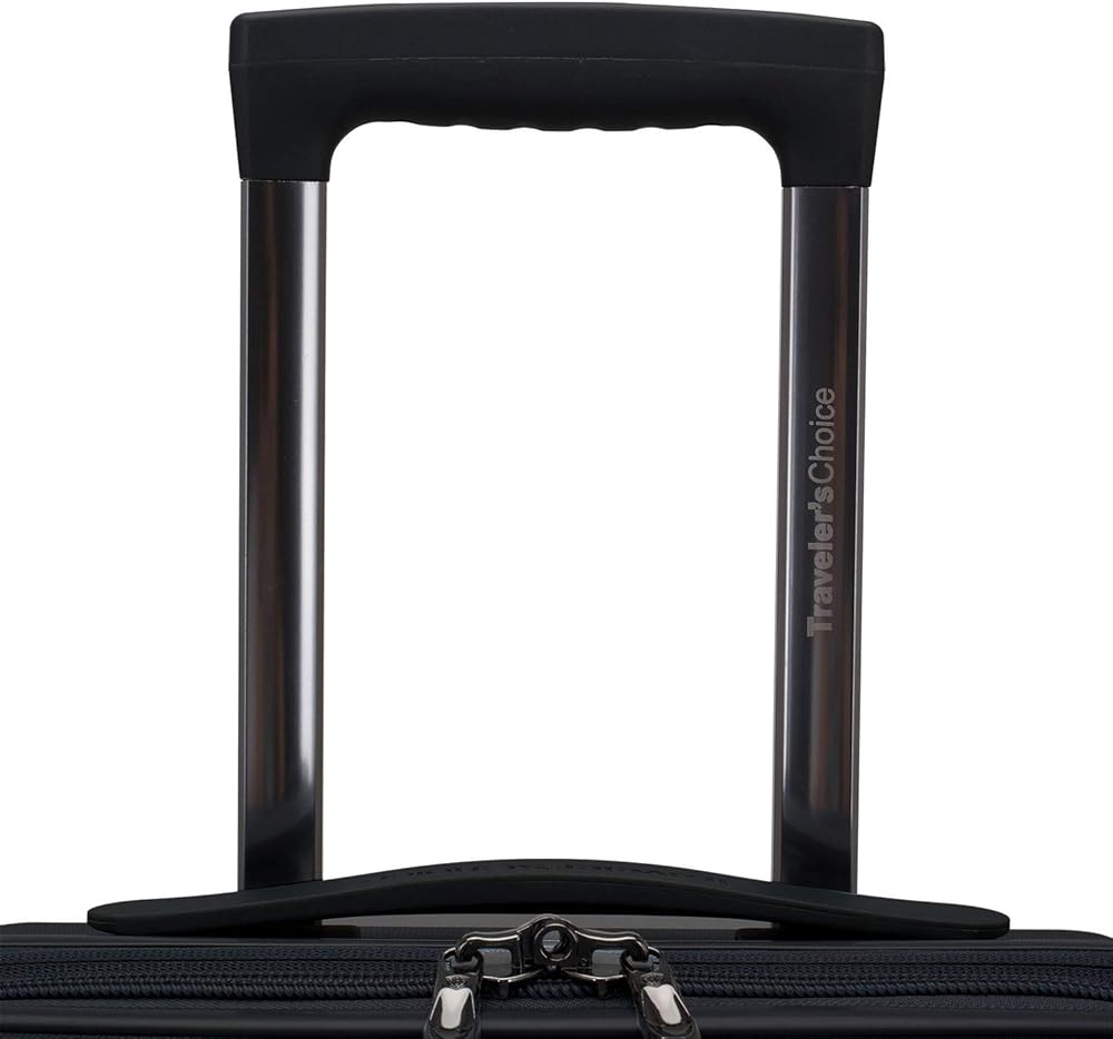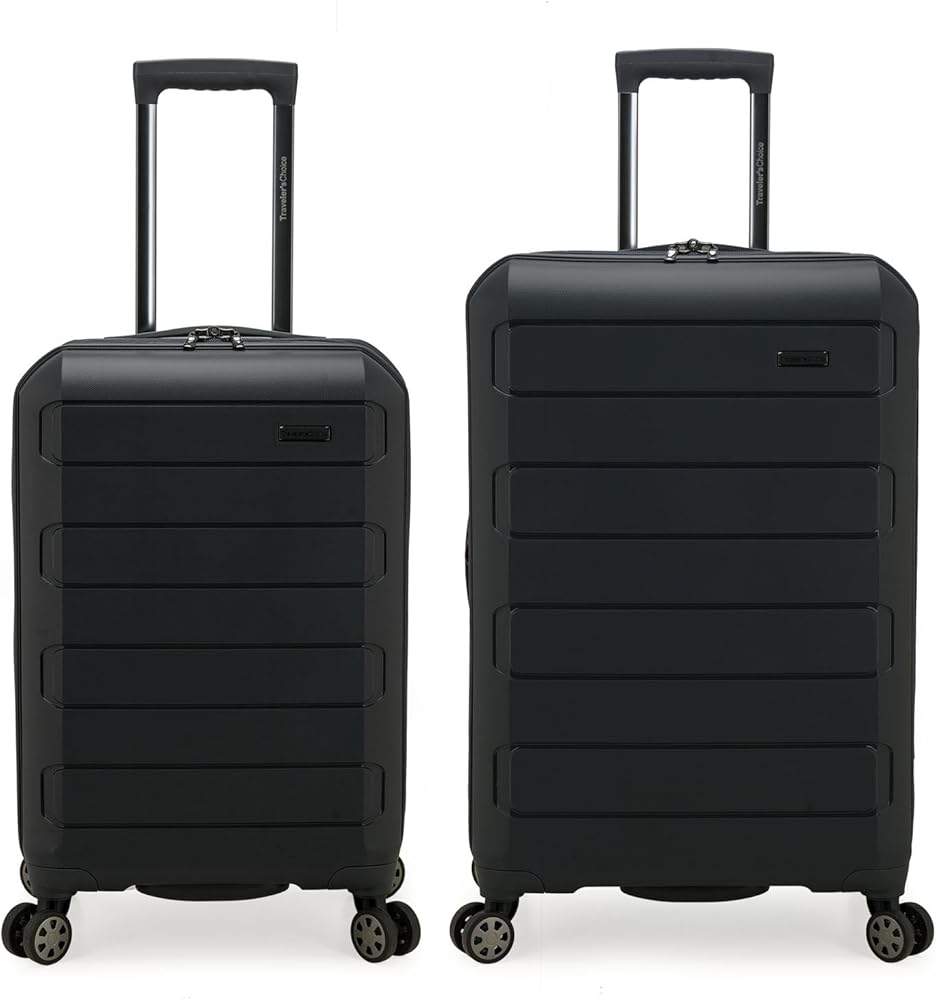 This pagosa 2-piece luggage set by Traveler's Choice includes a 26-inch expandable checked spinner luggage and a 22-inch carry-on expandable spinner luggage. It is made of textured polypropylene hard-shell that's abrasion-, scratch-, and water-resistant. Spinner wheels provide 360° rolling maneuverability through crowds and airports. Expansion gusset provide up to 2-inch to make packing a breeze. The 22-inch carry-on spinner features a built-in USB port, type C port, and an interior power bank compartment that provide quick connection to your portable electronic device for a quick charge. Power bank compartment measures 9” W x 3. 5” L x 1” D. (Power bank not included). the telescopic handle is adjustable and has push button mechanism. Top and side rubber carry handles provide easy lifting and carrying. Large interior compartment features multiple zippered pockets. Self-mending #10 zippers provide great durability. 26-Inch expandable spinners overall Dimensions: 26”h x 17”w x 11”d + 2” expansion. 26-Inch spinner's packing capacity: 23. 5”H x 16. 5”W x 10. 5”D (product weight: 8. 24 lbs. ). 22-Inch expandable spinners overall Dimensions: 22”h x 14. 25”W x 9. 25”D + 2” expansion. 22-Inch spinner's packing capacity: 19. 5”H x 13. 75”W x 8. 7. 5”D (product weight: 6. 3 lbs. ).