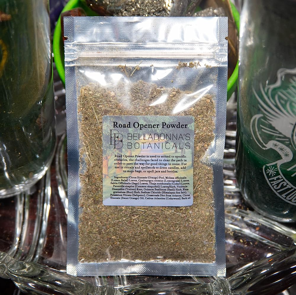 Road Opener Powder is used to attend to specific obstacles, the challenges faced to clear the path in order to pave the way for good things to come, achieving your goals and dreams. They help to open up new opportunities when it feels like you've had a streak of bad luck or haven't been able to make any progress. It can be used for matters of love, careers, financial stability, and new life paths.