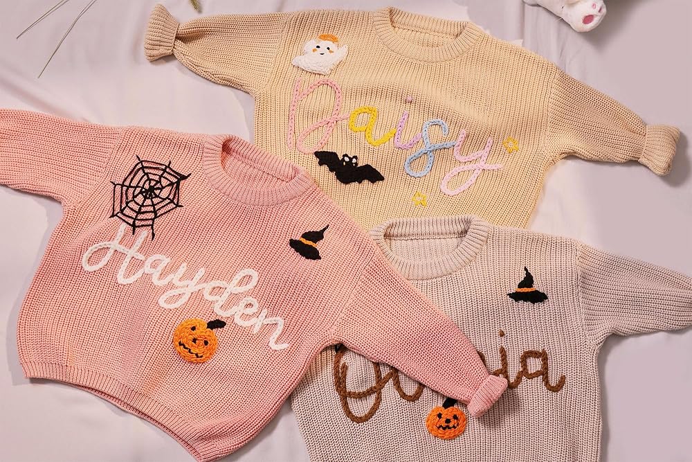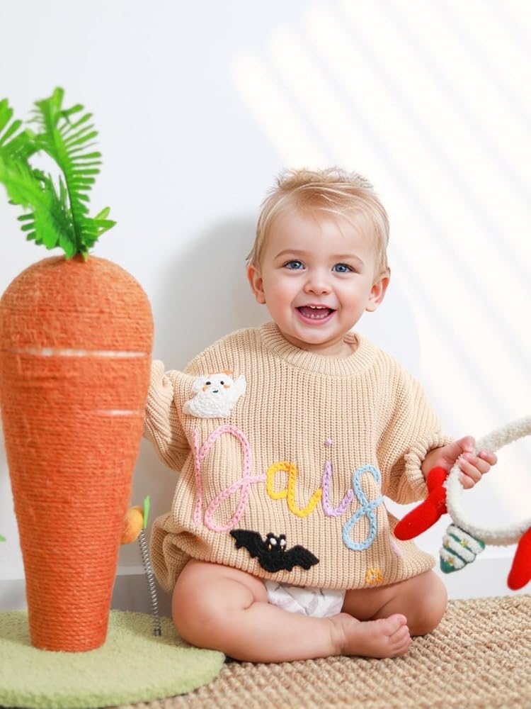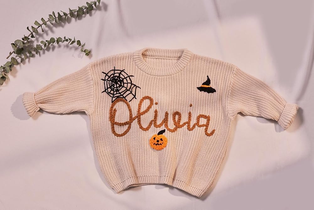 Customize Baby Name Sweater, Baby Sweater Halloween with Name, Personalized Hand Embroidered Name Baby Sweater, Birthday Gift for Baby, Christmas Gift for Baby Boy Baby Girl