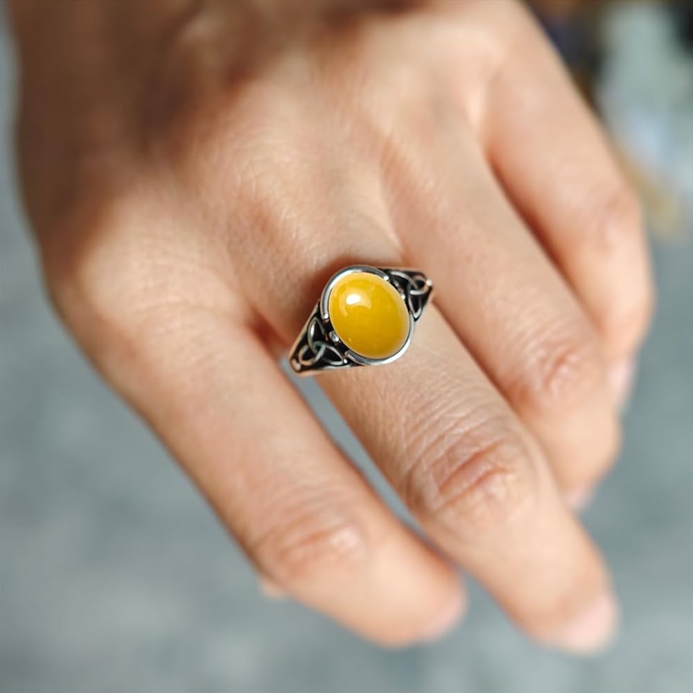 【Natural Oval-Cut Gemstone】 Features an 8x10mm smooth oval natural stone in secure bezel setting. Each stone displays unique natural variations.
