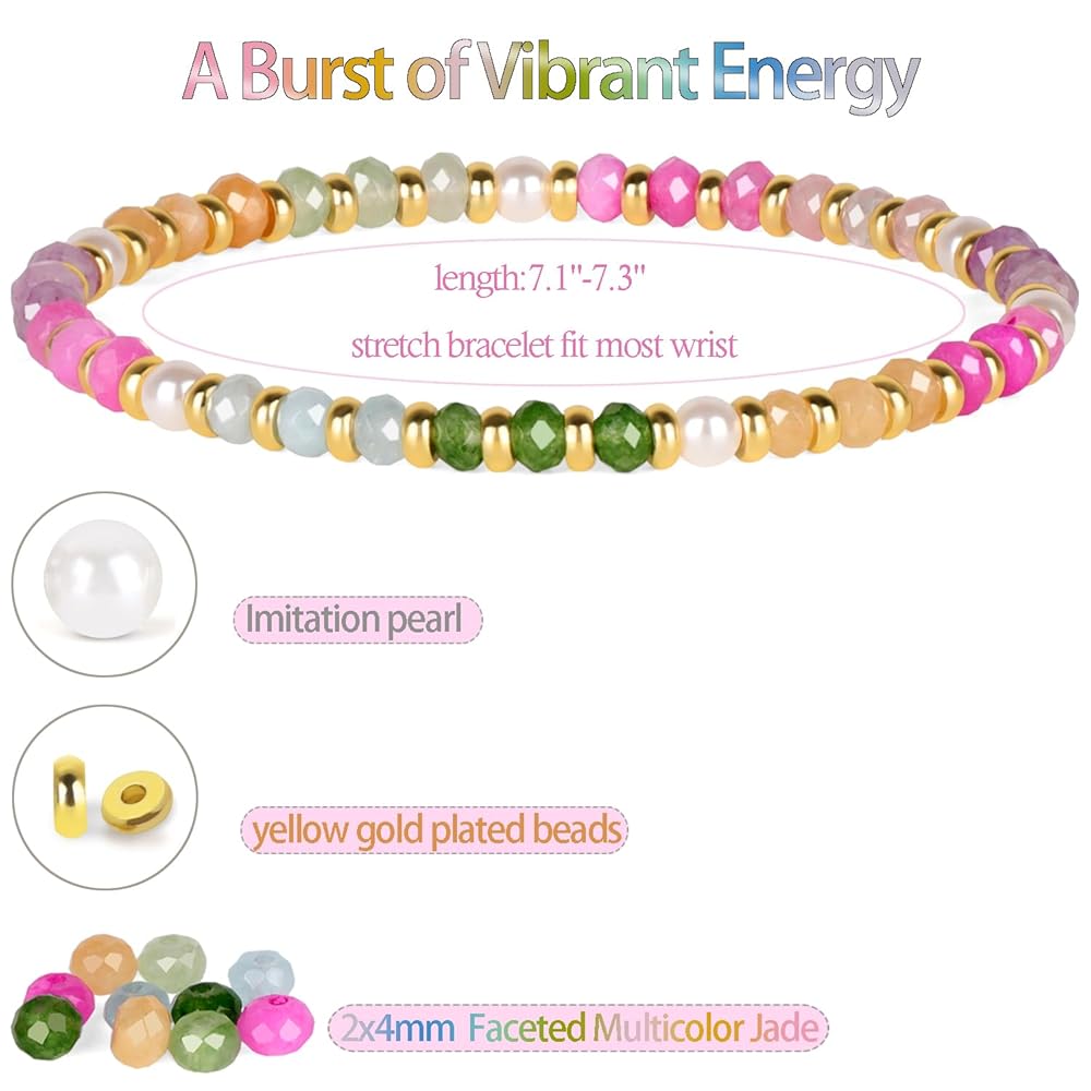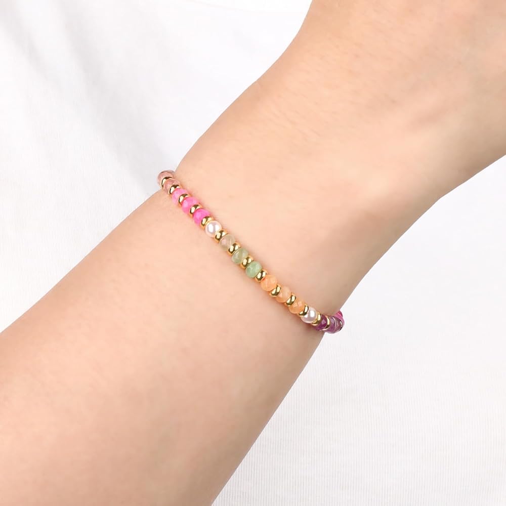 Handmade Healing Bracelets: 4mm natural gemstones and 14k gold plated beads bracelet. The bracelet is very light weight and comfortable, perfect for daily wear, stacking or meditation. The length of the bracelet is 7"- 7.3" inches, first for most wrist.
