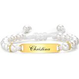 Personalized Name ID Bracelets for Baby Girls : Anti Allergy Gold Plated Stainless Steel Child Engrave Name Birthdate Bracelet, Custom Baptism Gift for Newborns Babies,Pearl Beads Girls Boys Bracelet