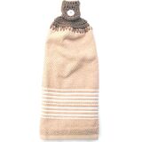 This is for a DOUBLE THICK/FULL crochet top hanging kitchen towel. It is a gray terry cloth with a white pattern trim. The top is crocheted in light gray yarn to match. It measures approximately 18" long X 16" wide and 100% cotton. These are great for any gift. Hang them on your stove, refrigerator or cupboard door. Buttons may vary. Even great for the bathroom.