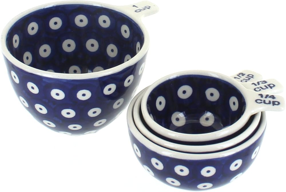 Blue Rose Polish Pottery - Blue Dots Measuring Cup Set - 1 Set - Ceramic Nesting Measuring Bowls for Baking, Cooking & Kitchen Prep