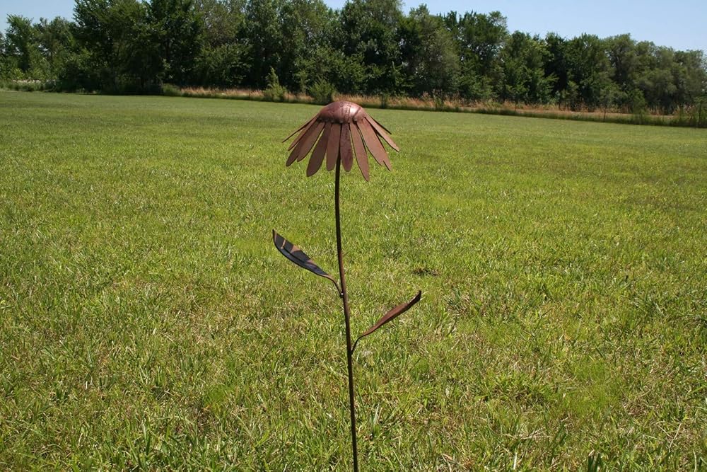 Coneflower! These adorable metal garden stakes are sure to fill every need. Available in many humorous sign options as well as clear notification signs. The face of the stake is cut from steel about as thick as a nickel. Naturally rusted signs have been pre-soaked to begin the rusting process. The patina will only improve with age! Please note that this option is made of real, rusted steel. Irregular colors are to be expected, and with time outdoors the entire item will turn a golden rusty brown. Rusted steel can stain fabrics and leave residue on your hands so gardening gloves are recommended. This option is not intended as an indoor product. Feel free to leave signs out in any weather. All of our items are 100% Made in United States of America and made to last!