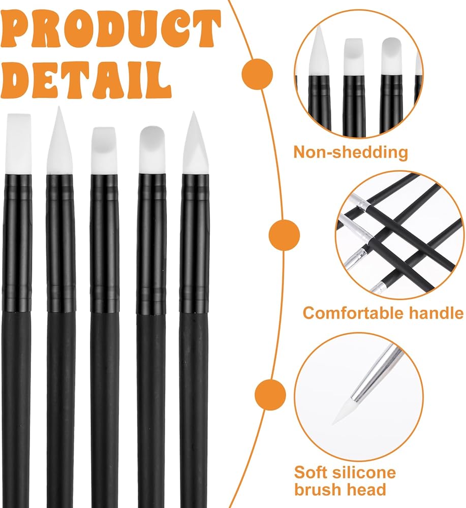 【Versatile Design】The five silicone head shapes can fulfill the requirements of both fine and extensive painting. With a silicone pen, it's effortless to transfer paint or gouache to your work, ideal for both craftsmen and painters